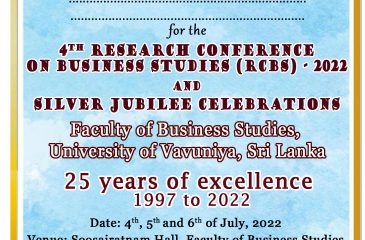 The Faculty of Business Studies, University of Vavuniya, hosts its 25th Silver Jubilee and 4th Research Conference on Business Studies (RCBS – 2022) on the 4th, 5th and 6th of July 2022. The conference’s […]