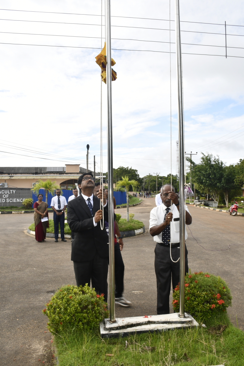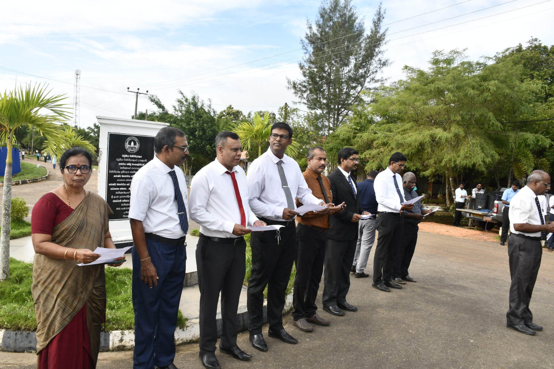 The University of Vavuniya ceremonially commenced duties of the New Year on the 1st of January 2026 with a special function attended by Professor A. Atputharajah, the Vice-Chancellor, along with Deans of Faculties, Registrar, Bursar and all other staff members of the University. The function commenced with the hoisting of the national and university flags by the vice chancellor and registrar, followed by the singing of the national anthem. Subsequently, the Public Servants’ Oath was read by the Registrar, which was followed by the staff of the university.
