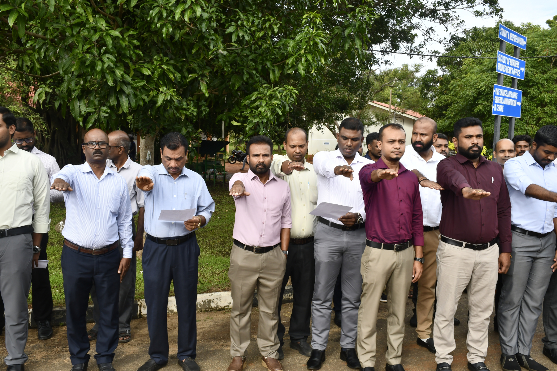 The University of Vavuniya ceremonially commenced duties of the New Year on the 1st of January 2026 with a special function attended by Professor A. Atputharajah, the Vice-Chancellor, along with Deans of Faculties, Registrar, Bursar and all other staff members of the University. The function commenced with the hoisting of the national and university flags by the vice chancellor and registrar, followed by the singing of the national anthem. Subsequently, the Public Servants’ Oath was read by the Registrar, which was followed by the staff of the university.