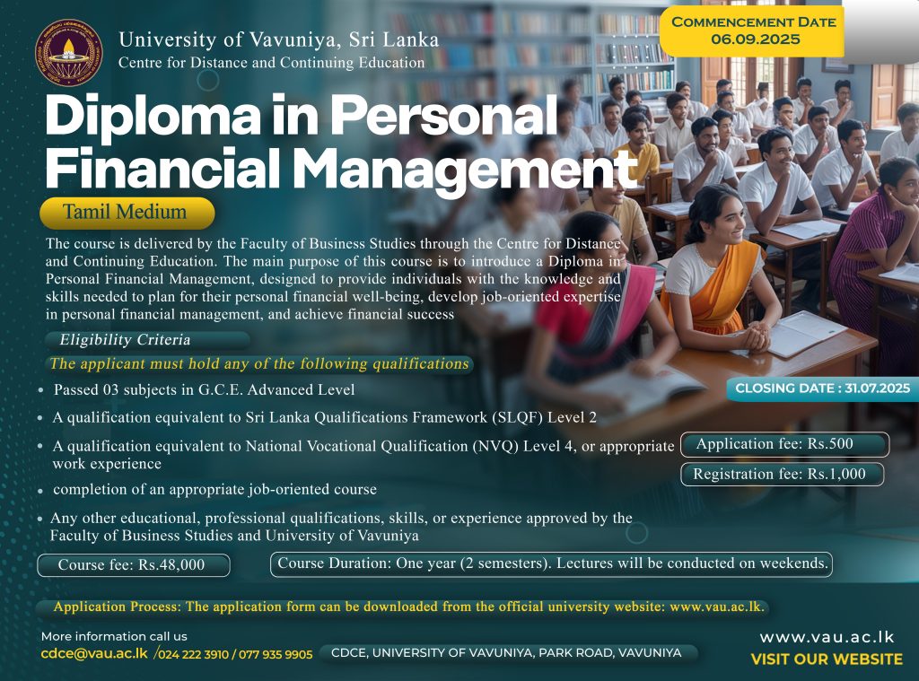 Diploma in Personal Finance Management – Application Deadline 31/07/2025