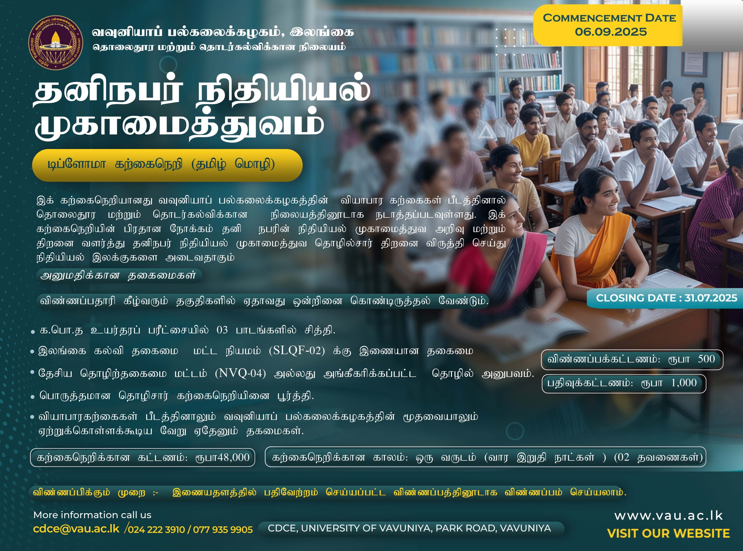 University of Vavuniya Calls for Applications for Academic and Other Permanent Positions