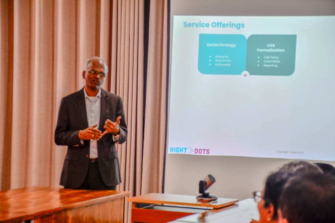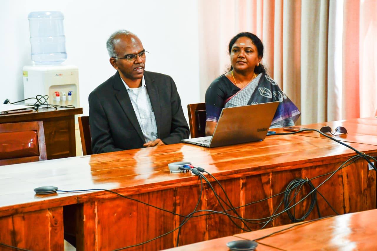 The Staff Development Center of the University of Vavuniya organized a discussion on “Building Social Responsibility through Employee Volunteering: Pathways for Academic Staff, Academic Support, Executive & Administrative Staff.” This workshop was scheduled to be held on 17th October 2025, from 11:00 a.m. to 12:30 p.m. at the Board Room, IT Centre, University of Vavuniya. The session was conducted by Mr. Balakumar Thangavelu, Director – CSR, India Head – Outreach, Employee Volunteering (CSR) | Global Lead – ESG, and Ms. Vidhya Bhojan, Founder of Right Dots, a CSR consulting firm, who served as the resource persons, sharing their expertise with the staff.