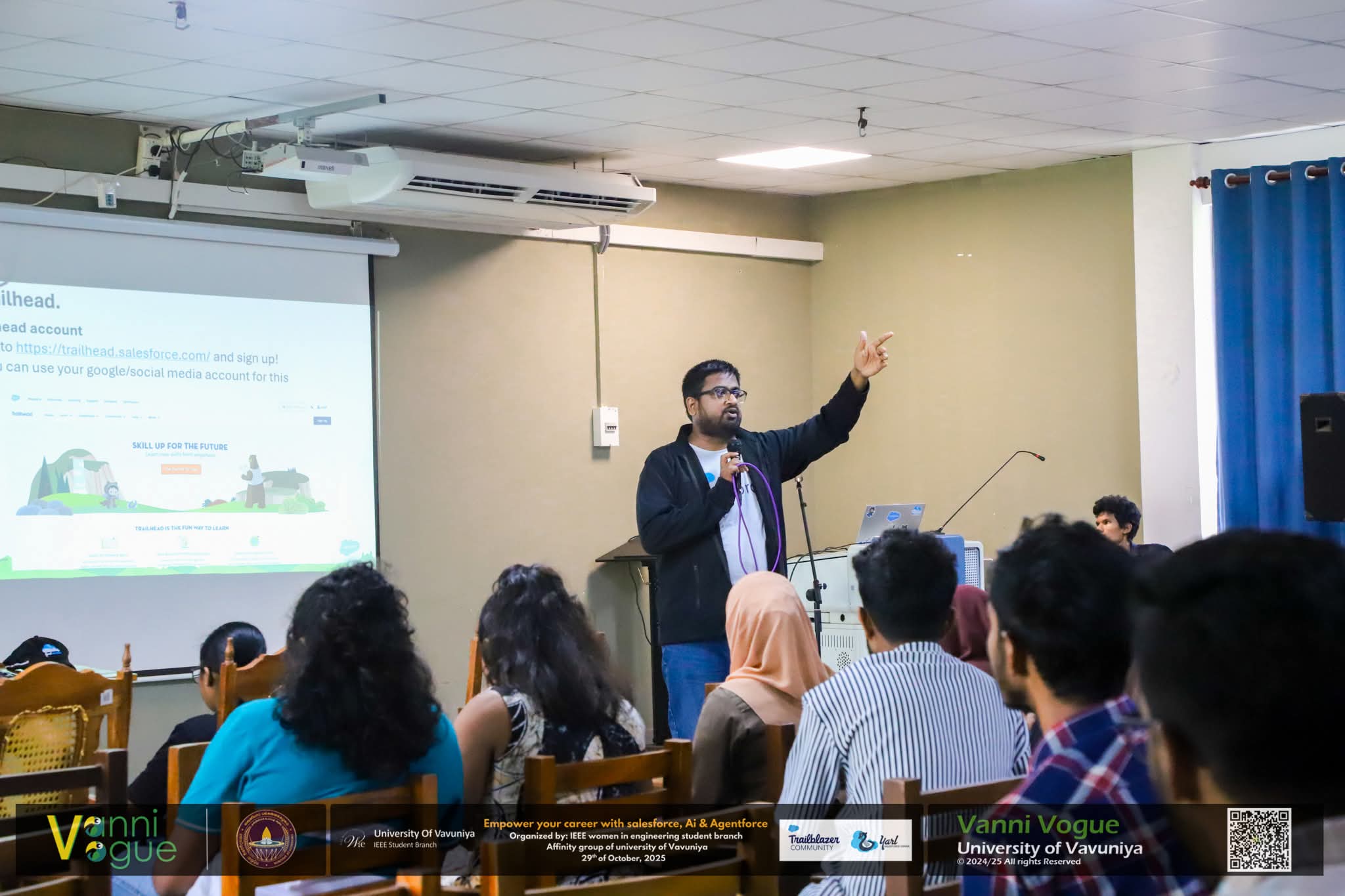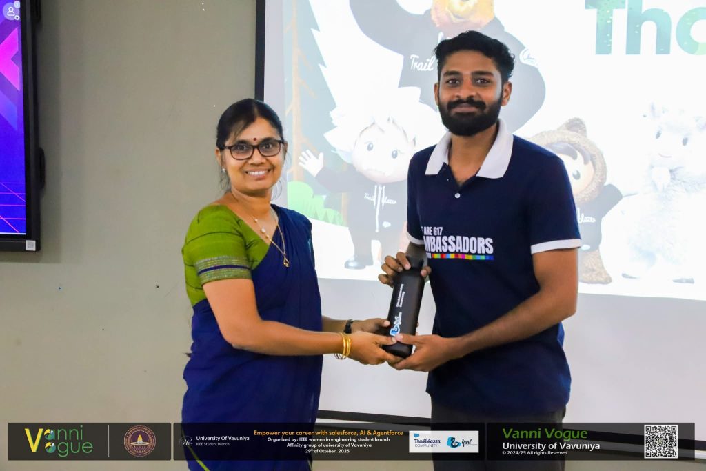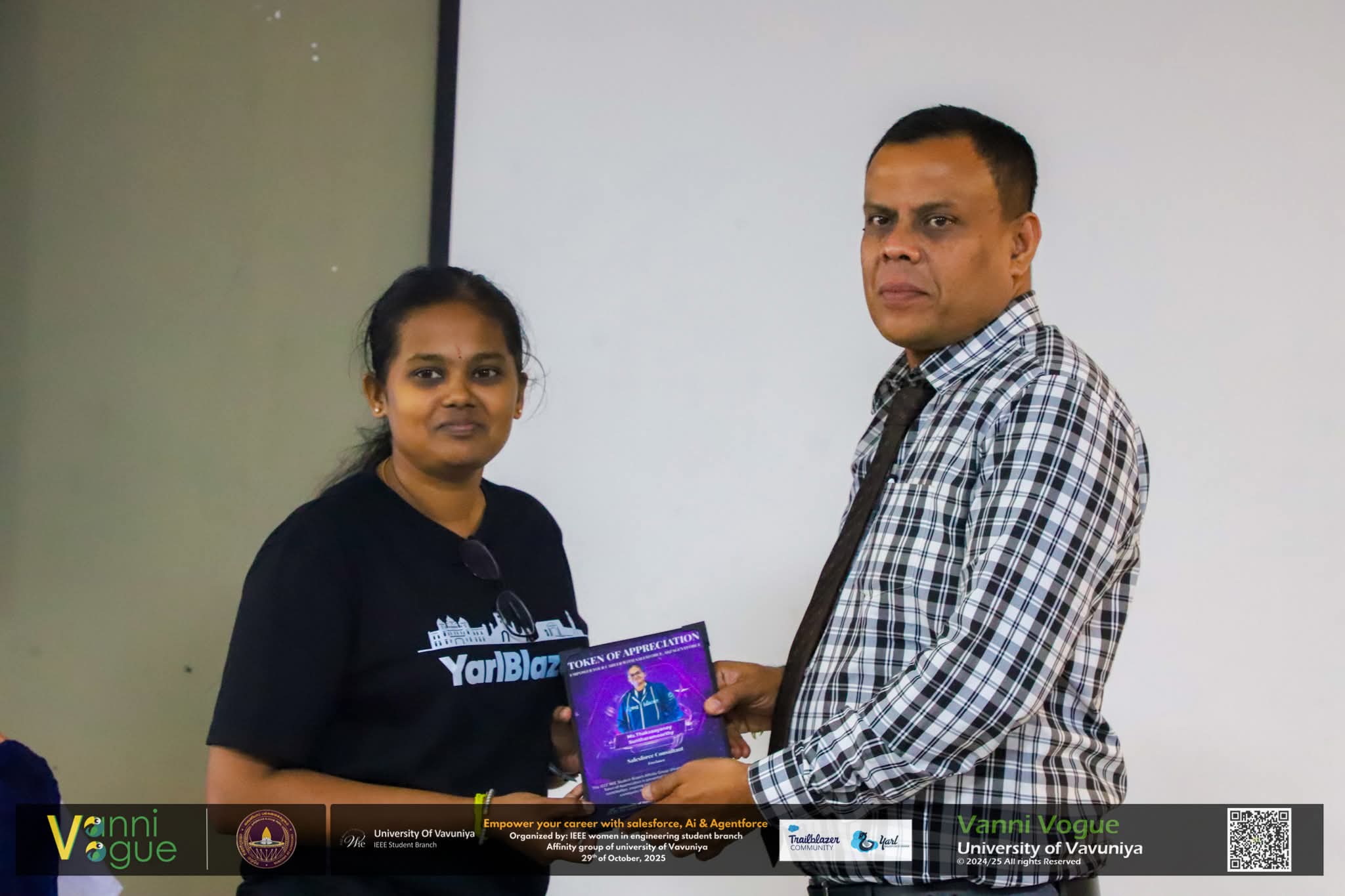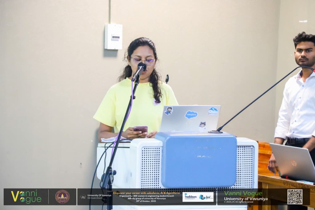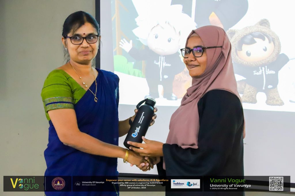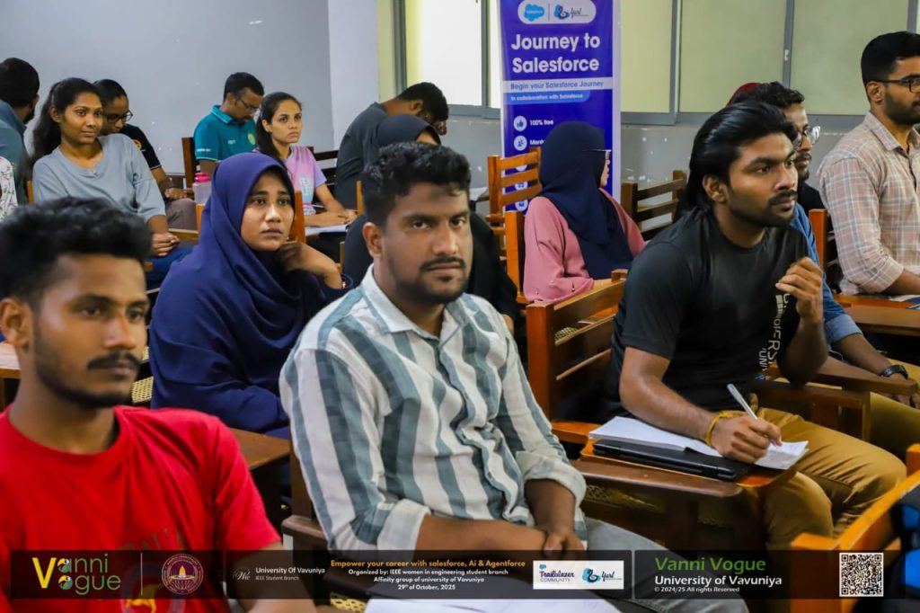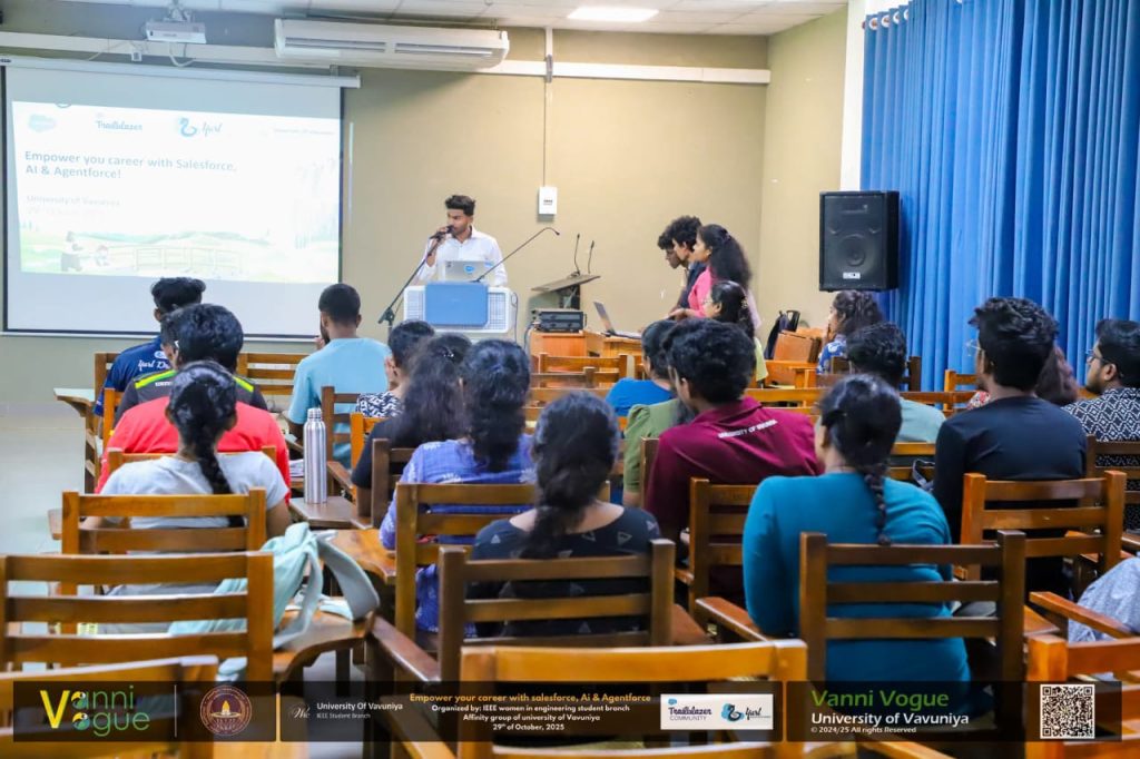 The WIE IEEE Student Branch Affinity Group of the University of Vavuniya successfully organized an inspiring and knowledge-packed session titled “Empower Your Career with Salesforce AI & Agentforce.”