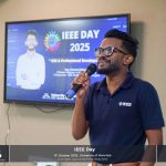 The event commenced with a warm welcome by IEEE Day Ambassador Mr. N. Sanjeevan, followed by an insightful address from Ms. Thasika Ragupathy, Chairperson of the IEEE Student Branch. A highlight of the event included a technical session on “Humanitarian Technology and SDGs under the IEEE Umbrella,” delivered by Mr. Dinuth Amuraj, Vice Chairperson of the IEEE R10 Humanitarian Technology Activities Committee. The session emphasized how engineering solutions can address real-world societal challenges through innovative approaches aligned with the Sustainable Development Goals.