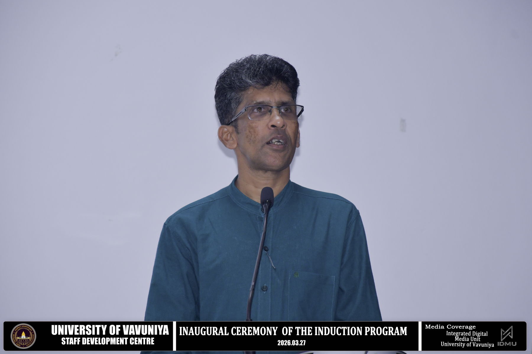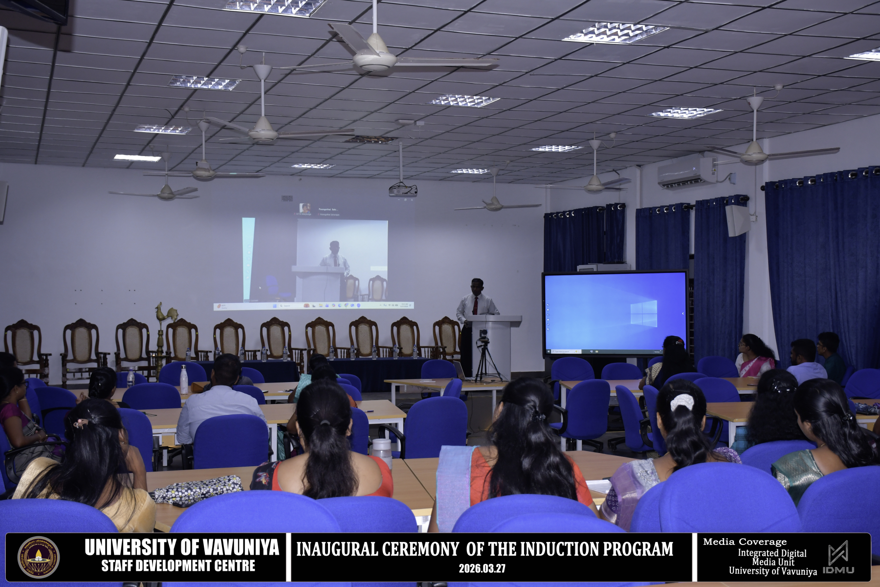 The Staff Development Centre of the University of Vavuniya successfully launched and is currently conducting the Induction Program for Academic Staff (IPAS) – 2026, which commenced on 27th March 2026 at the Smart Lecture Hall, Faculty of Applied Science. The programme was held from 9.00 a.m. to 12.30 p.m.The event began with the traditional lighting of the oil lamp, symbolising knowledge and new beginnings. This was followed by a warm welcome address delivered by Dr. G. R. M. Gamlath, Director of the Staff Development Centre. Subsequently, Prof. T. Mangaleswaran addressed the forum and emphasized that this initiative provides a valuable and credible opportunity for newly recruited academics to enhance their academic calibre by strengthening their professional competence and resilience within the contemporary academic environment. Then , the Vice-Chancellor also addressed the gathering, inspiring the newly recruited academic staff to strive for excellence and to contribute meaningfully to national development through teaching, learning, research, and community engagement. During the session, several key university officials, including Deans, Heads of Departments, Directors of various units, and the Bursar, addressed the participants. Their insightful contributions provided valuable guidance on academic responsibilities, institutional expectations, quality assurance practices, research opportunities, and career development pathways within the university. Finally, this inaugural session concluded with a vote of thanks delivered by the Programme Associate, Ms. A. Prasheenaa, who expressed sincere appreciation to all participants and contributors for ensuring the success of the event. Following the inauguration, the programme proceeded with an academic session titled Module 7 – Teaching Practice: Effective Presentation Skills, conducted by Dr. N. Ravinthirakumaran, Senior Lecturer in Business Economics. This session provided further insights and practical knowledge to the participants.