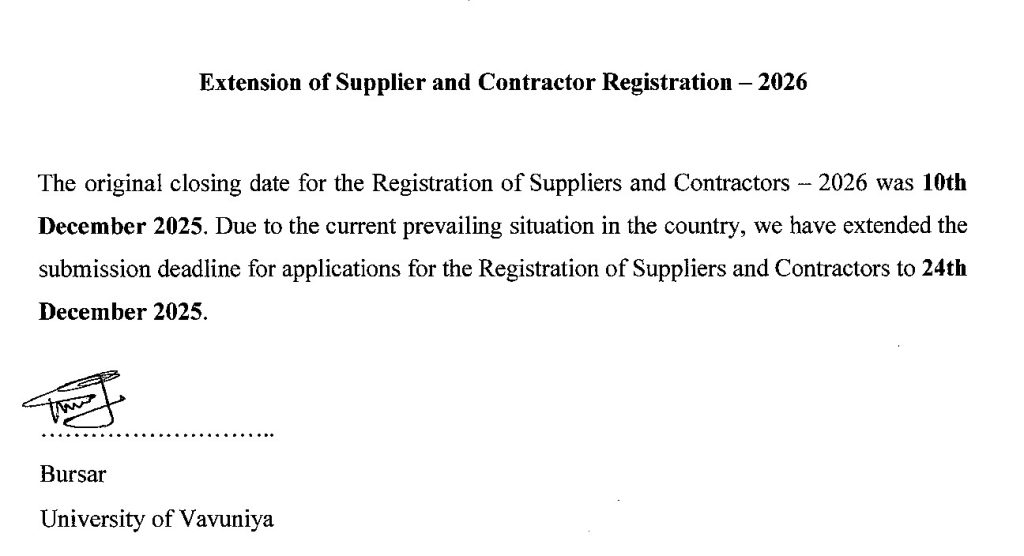 Extention upto 24/12/2025 – Registration of Suppliers and Contractors – 2026