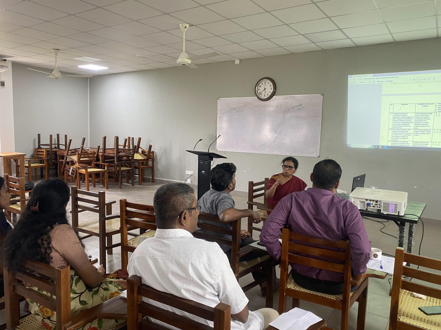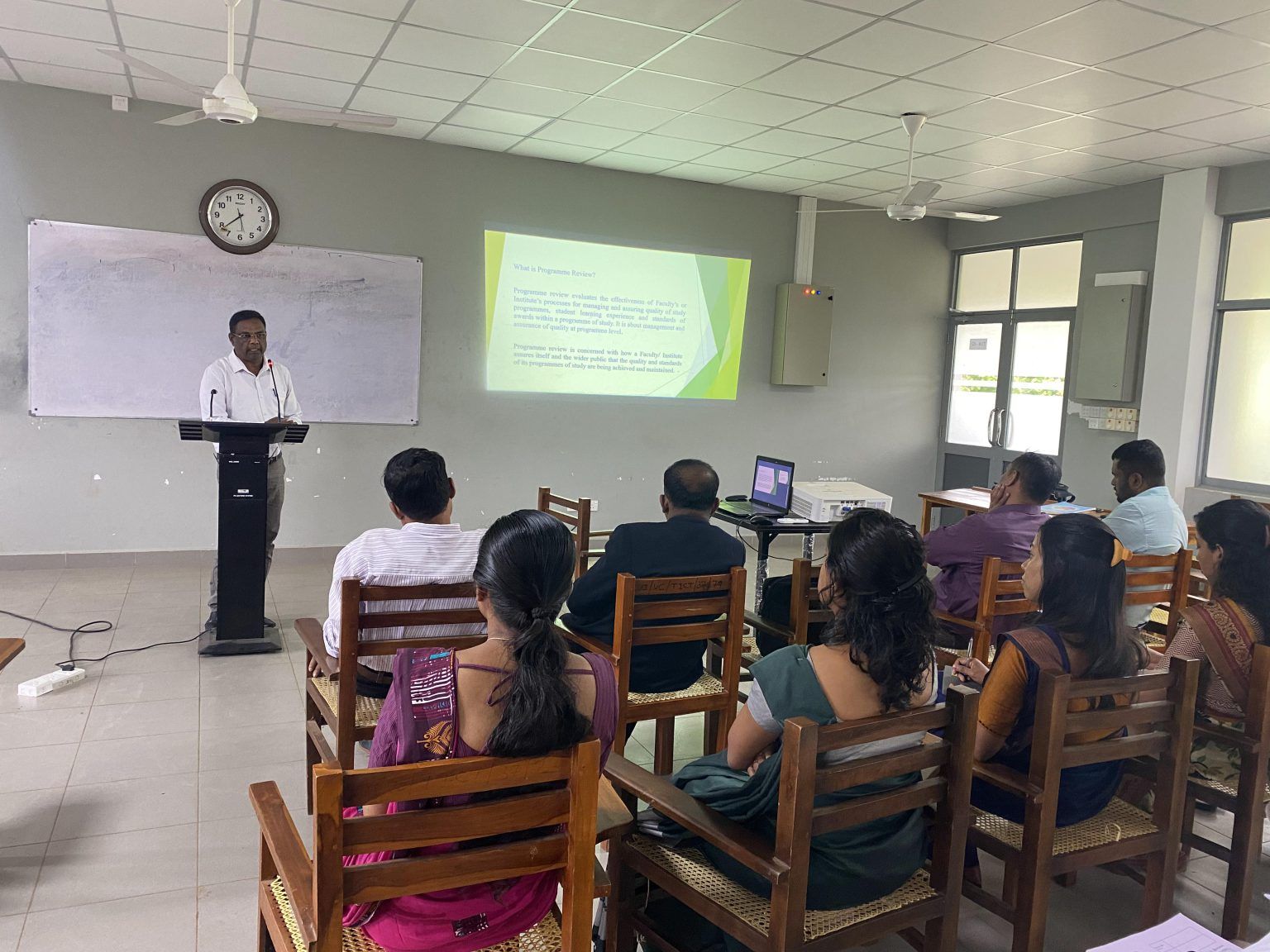 Faculty of Technological Studies about to complete five years in offering the Bachelor in Information and Communication Technology degree program, priority has given to the permanent academic staff of the Faculty of Technological Studies. Further, Dr. (Mrs). Poongothai Selvarajan, Prof. (Mrs). A. Nanthakumaran, Prof. A. Pushpanathan and Prof. V. Sivalogathasan served as the resource persons for this training sessions and they shared their experiences on Institutional Review.