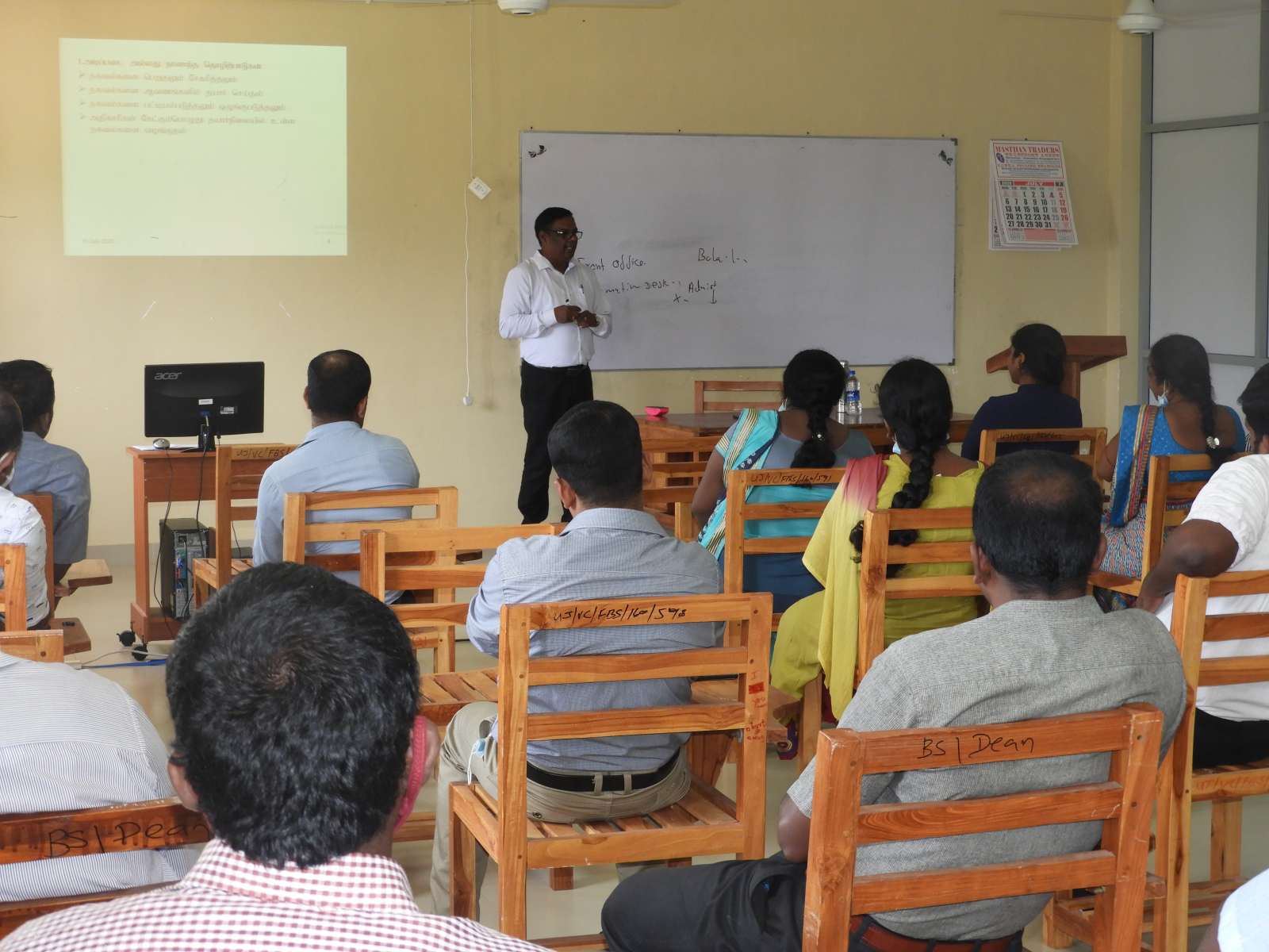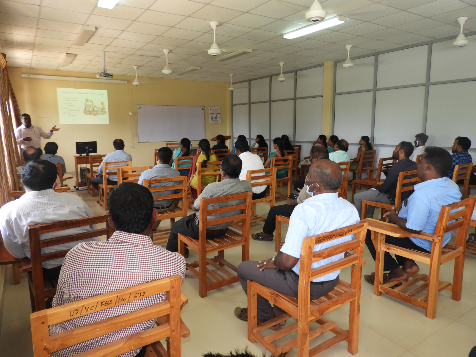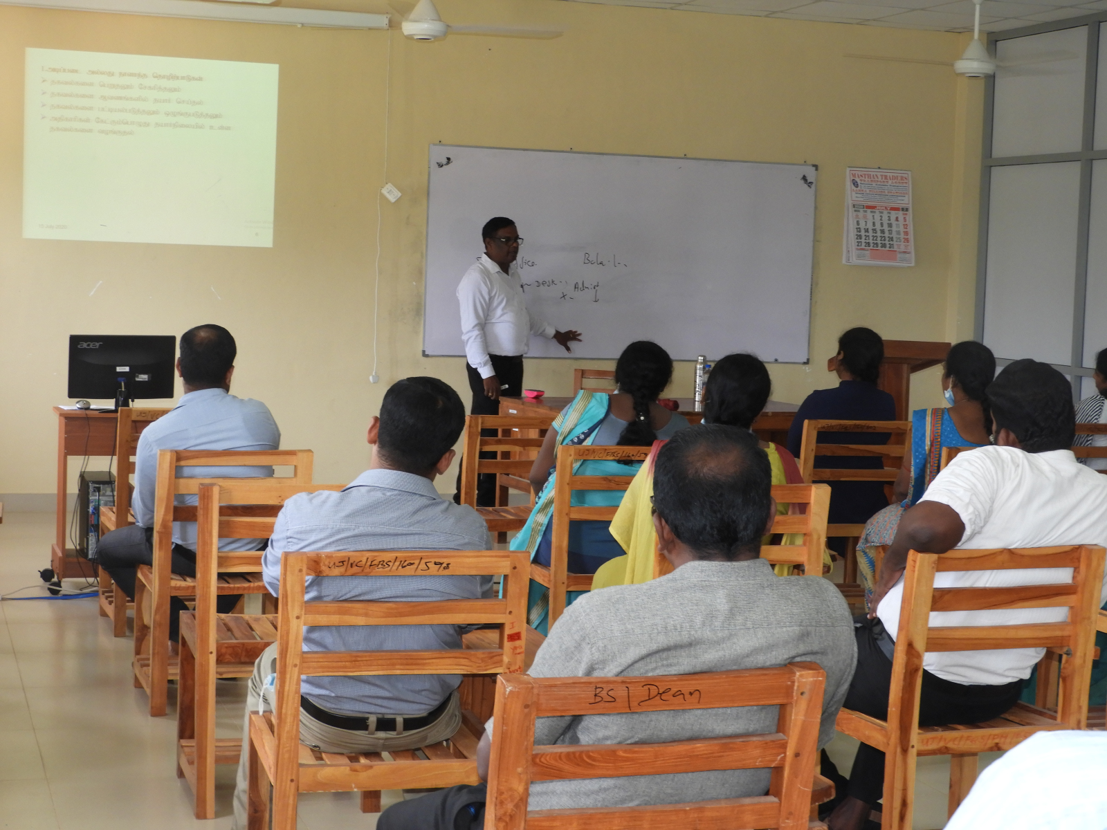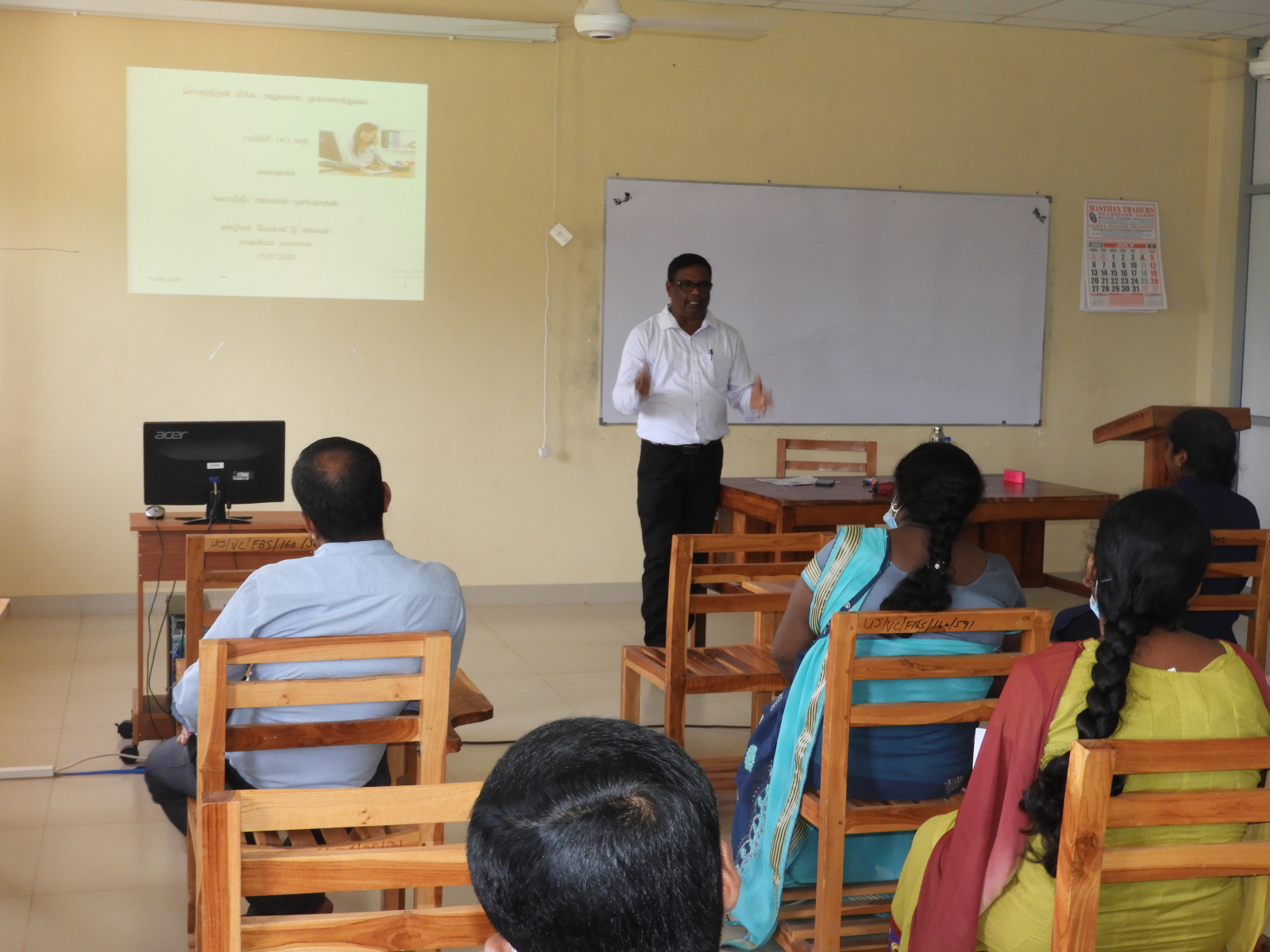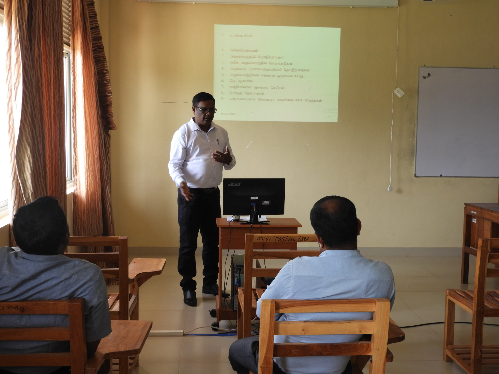 The Workshop on “Effective Office Management” had been organized by the Staff Development Centre of the Vavuniya Campus to the Permanent Non Academic Staff on 15th July 2020 from 2.00 pm- 4.00 pm at Balakrishnan Block (BH1), Faculty of Business Studies, Vavuniya Campus of the University of Jaffna, Pambaimadu, Vavuniya. Dr.A.Pushpanathan, Senior Lecturer, Department of Economics and Management, served as the Resource person and discussed about the office correspondence, organizing resources, time management and the public relations. The participants had the opportunity to learn the systems practiced by various departments and got benefitted.