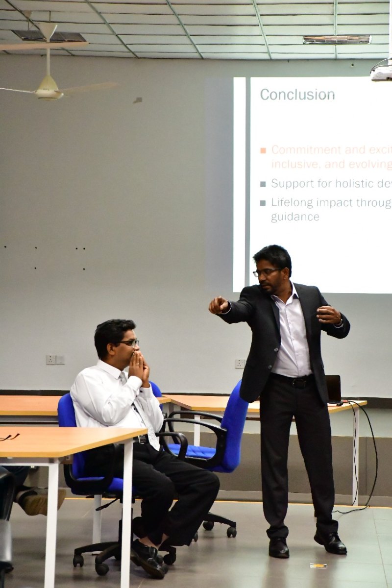 workshop. The session focused on key topics such as understanding different student learning styles, effective teaching methods, mentoring strategies, and continuous assessment for improvement. Professor Ravichandran emphasized that students have eight distinct learning styles, and stressed the importance of creating an inclusive, student-centered learning environment.