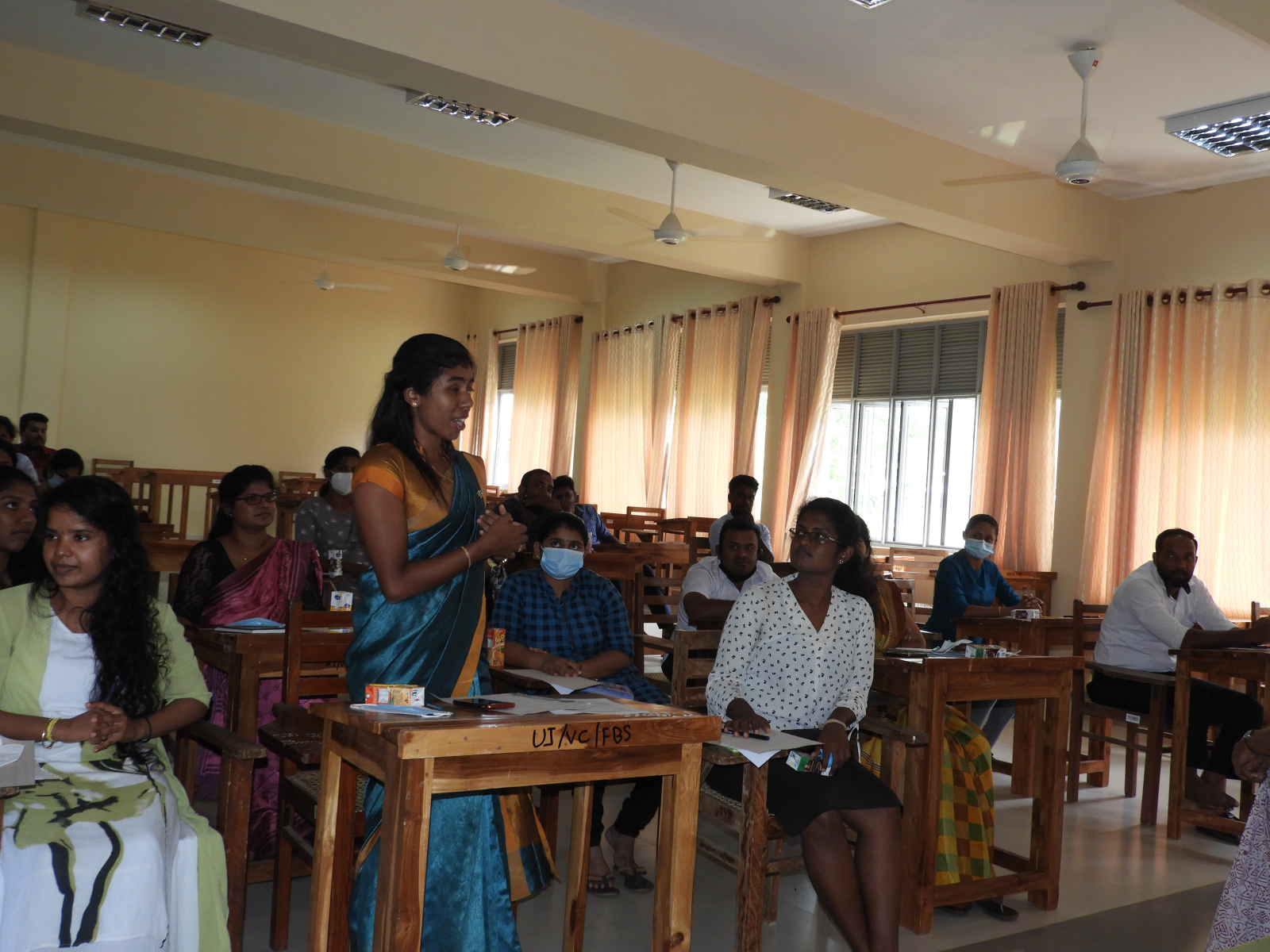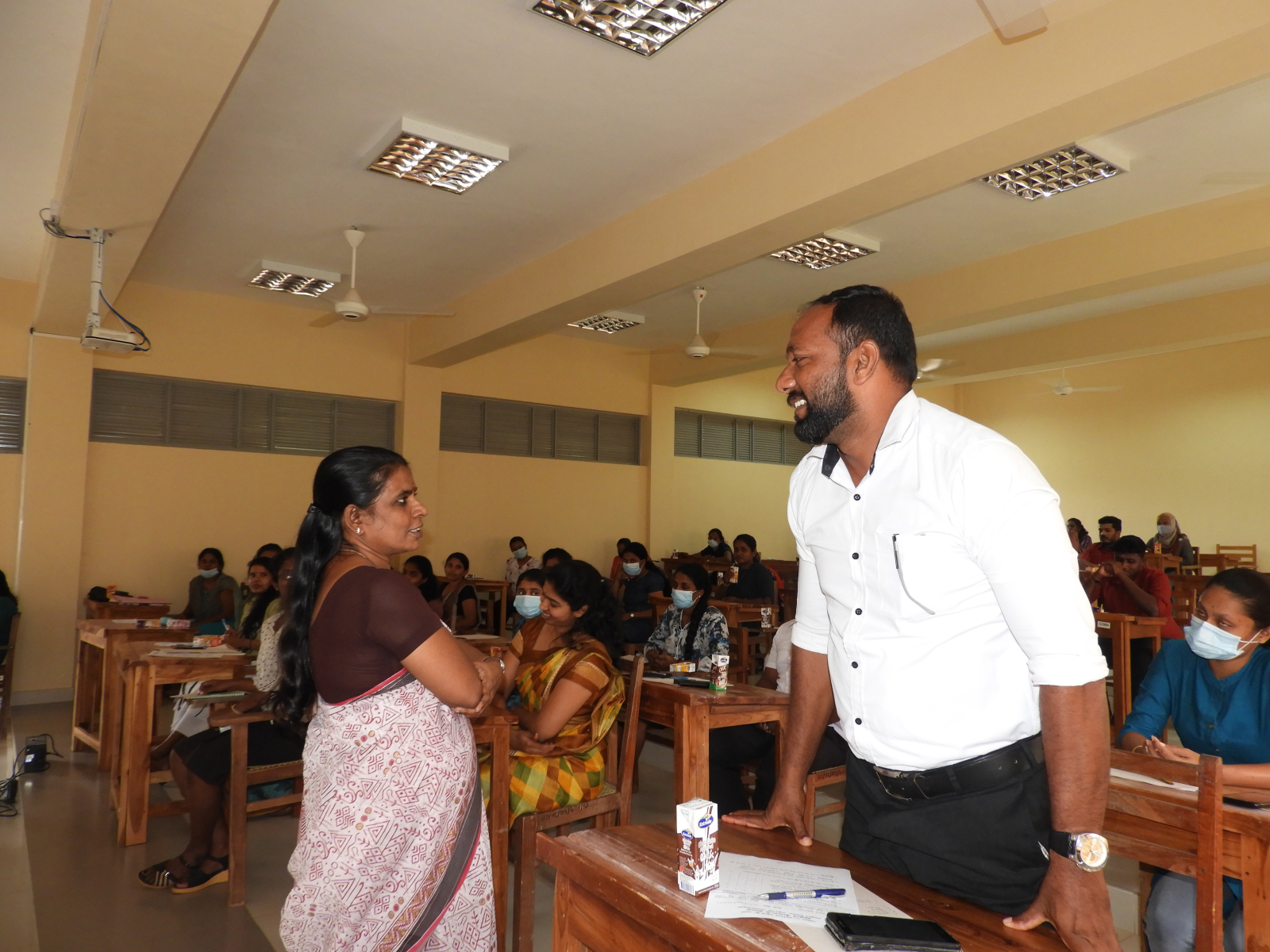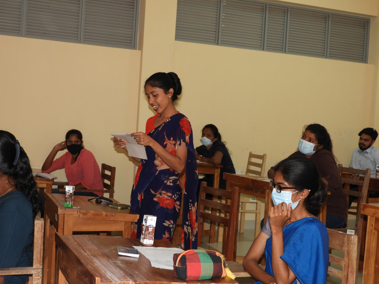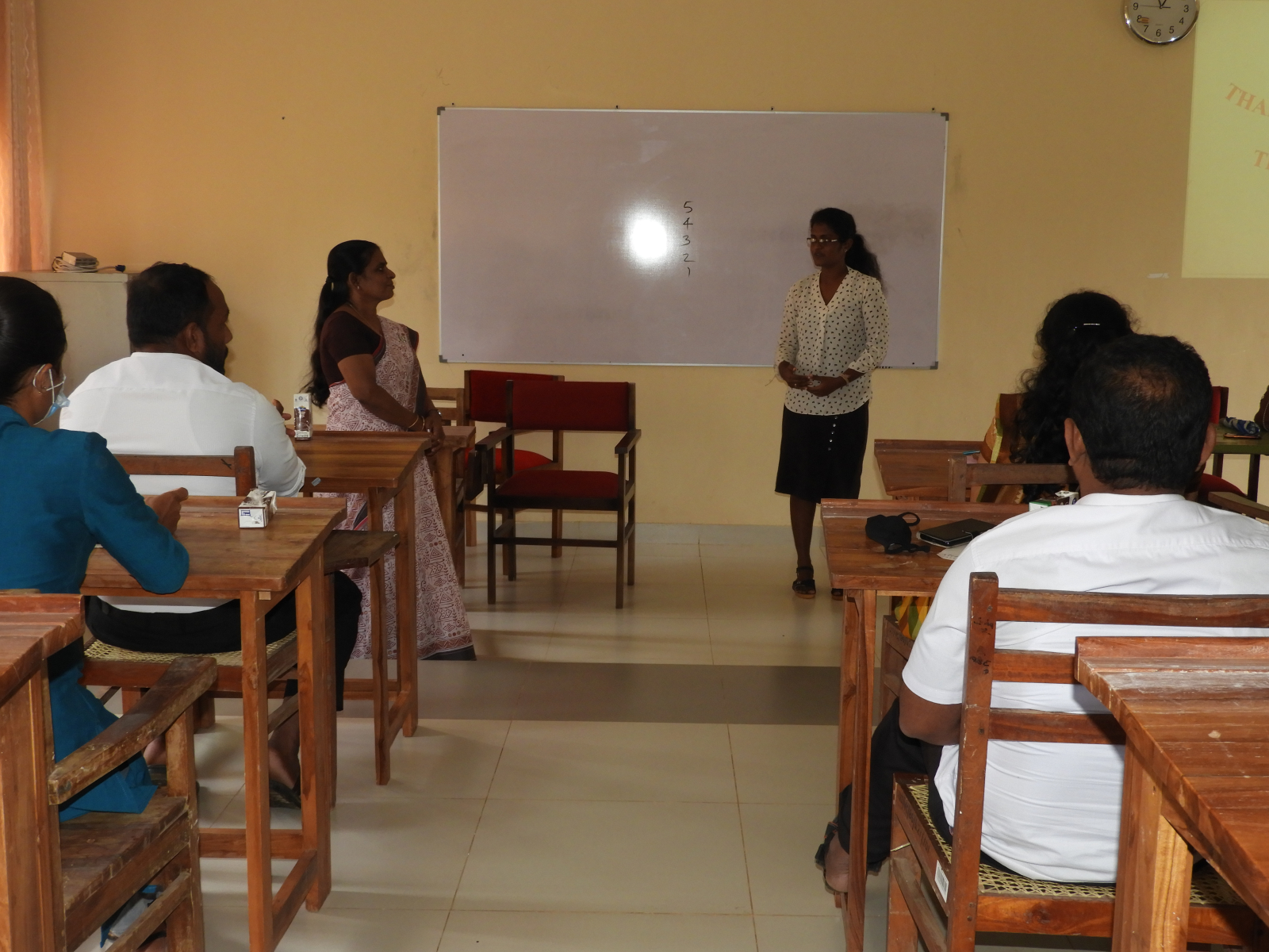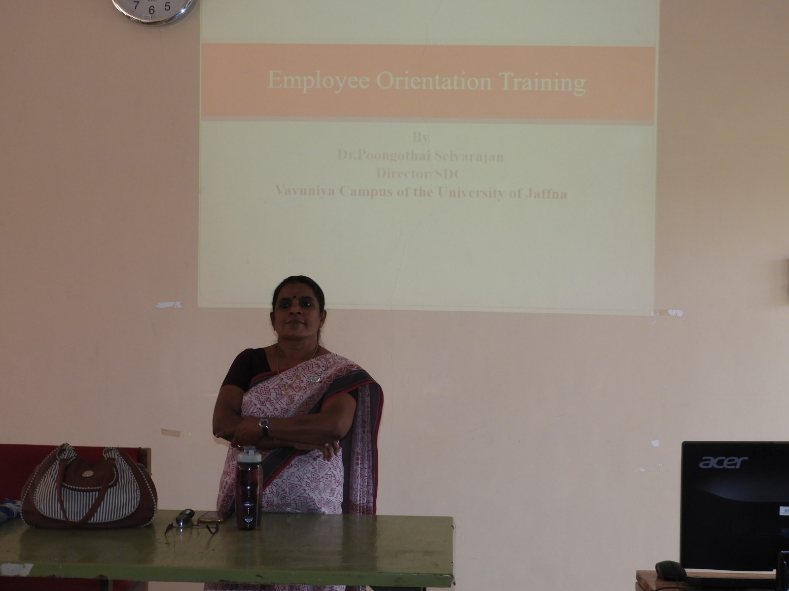 The Workshop on “Employee Orientation Training” was held on 10thDecember 2020 from 10.00 am- 12.00 noon to newly recruited Academic, Administrative, Academic Support and Non-Academic staff of Vavuniya Campus at Soosairatnam Block (SH3) hall, Faculty of Business Studies, Vavuniya Campus of the University of Jaffna. Dr.Poongothai Selvarajan Director / Staff Development Centre Vavuniya Campus, served as the Resource person for this workshop and delivered bilingualy about the Campus history, and how to develop themselves in their career. The participants were given the opportunity to do self assessment about their work attitude and behavior and this workshop enabled the participants as an interactive session and expressed their views regarding their working environment.