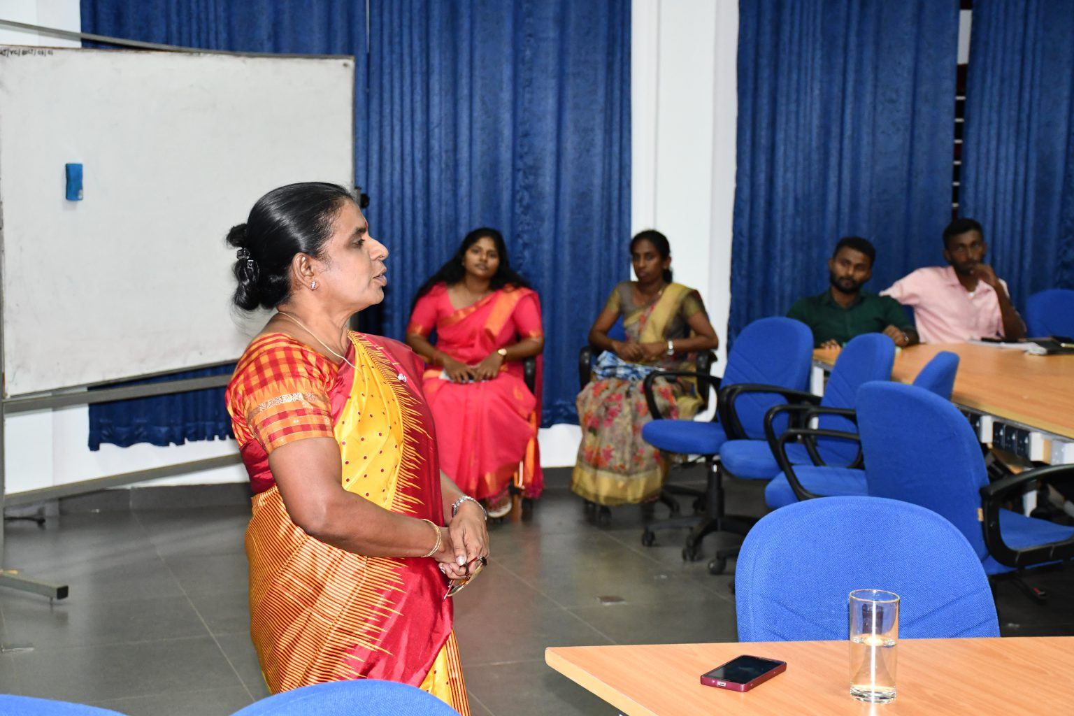 Dr. Poongothai Selvarajan, Senior Lecturer in Management, Department of Management & Entrepreneurship, Faculty of Business Studies, University of Vavuniya served as the resource person for this workshop. A total of 29 participants participated under this session. Participants greatly benefited from this workshop, gaining insights into the importance of guidance and counseling among students, particularly in universities. They learned about the counseling process itself and acquired valuable mentoring skills. The interactive nature of the session proved instrumental in helping participants address their practical difficulties effectively.