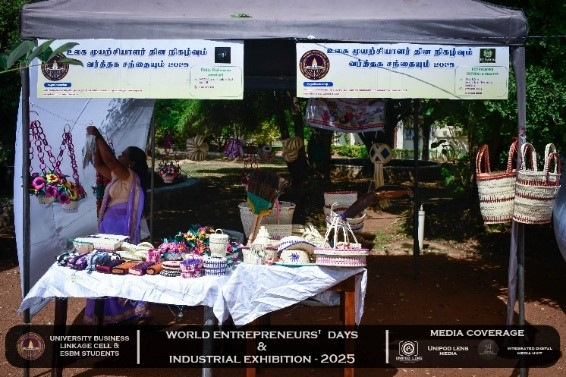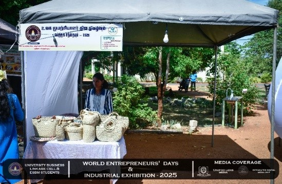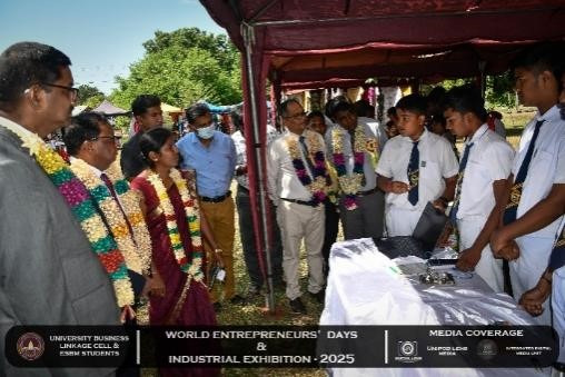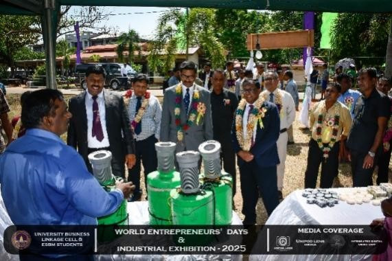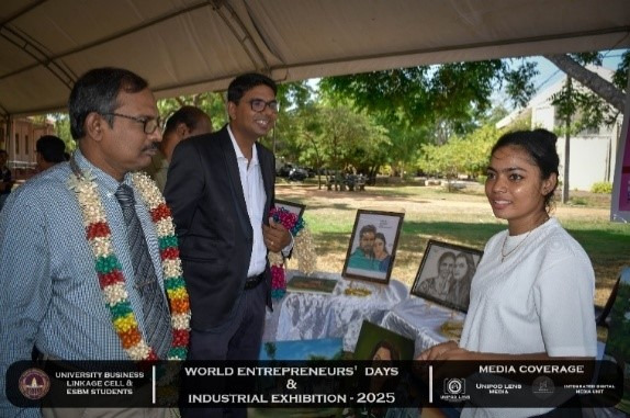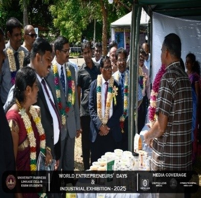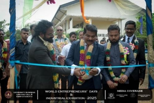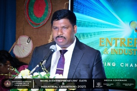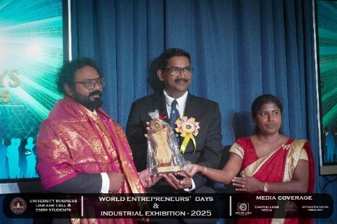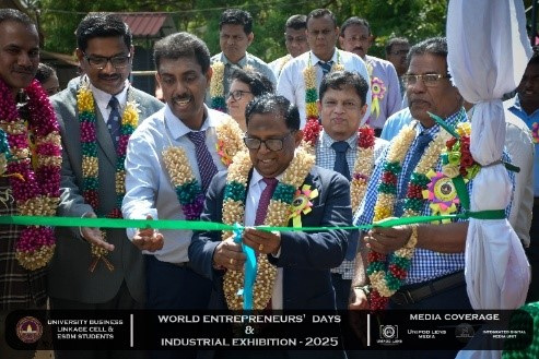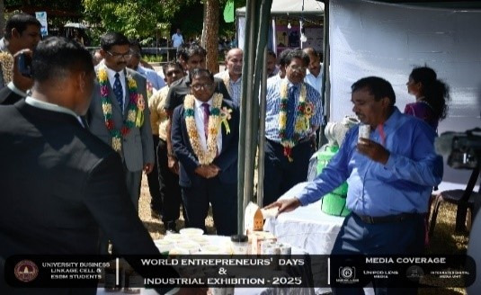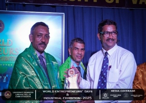 The University Business Linkage Cell of the University of Vavuniya, in collaboration with the students of the Entrepreneurship and Small Business Management (ESBM) program, proudly hosted the World Entrepreneurs’ Day and Industrial Exhibition – 2025 on the 25th and 26th of August 2025. The event took place at the University of Vavuniya premises and stood as a landmark occasion that not only celebrated entrepreneurship but also connected academia, industry, and government institutions in a spirit of collaboration and innovation. This prestigious exhibition was organized in partnership with several renowned organizations,the participation of national, regional, and international stakeholders. Day One was inaugurated by Hon. N. Vethanayagan, Governor of the Northern Province, Senior Professor A. Atputharajah, Vice Chancellor of the University of Vavuniya, Ms. Vanaja, Director of the Northern Industrial Department, and Mr. Thillai Kumaran, Founder and Managing Director of Tamil Venture LP, USA, highlighting strong collaboration among government, academia, industry, and global networks. The program featured a welcome address by the Director of the Business Linkage Cell, opening remarks by the Vice Chancellor, and an introductory speech by the Program Coordinator of ESBM, followed by insights from the Northern Industrial Department on government support for entrepreneurs. Key activities included experience-sharing sessions by successful entrepreneurs, recognition of outstanding business leaders, and a panel discussion on “Challenges of the Green Economy: Opportunities and Solutions,” focusing on sustainable practices in agriculture, fisheries, and industry.